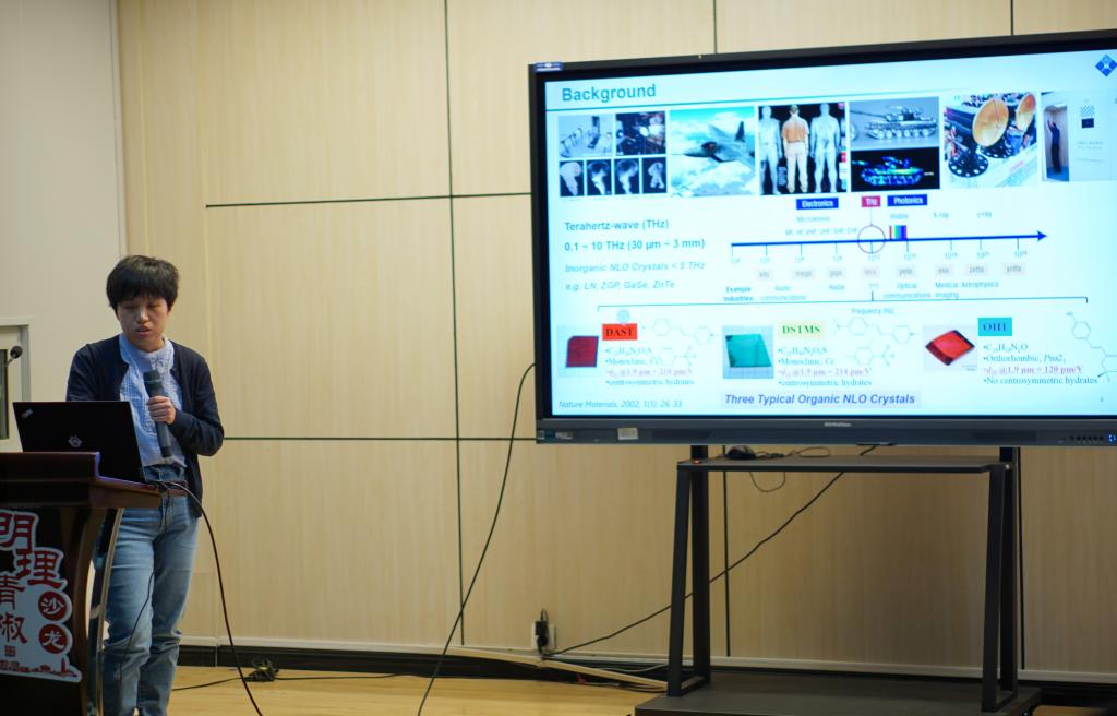 张馨元作“可用于太赫兹波产生和探测的吲哚基非线性光学晶体材料探索”的报告,并分析了此类晶体的组成结构设计策略。该研究通过一系列表征与性能测试评估了其在太赫兹辐射产生与探测领域的应用前景。