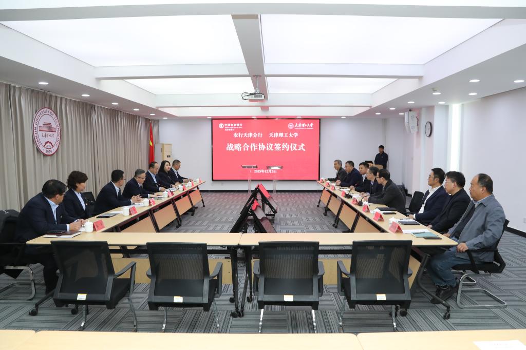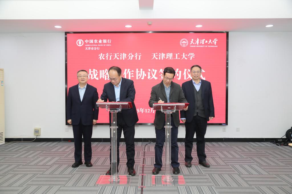 12月2日,我校与中国农业银行股份有限公司天津市分行举行战略合作协议签约仪式,双方正式确立长期稳定的战略合作伙伴关系。农行天津市分行党委书记、行长钱宏,副行长张敬涛,校党委书记、校长练继建,党委常委、副校长陈胜勇出席签约仪式并参与座谈。