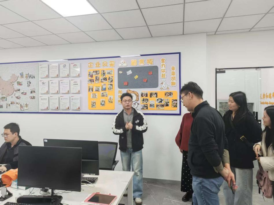 在天津和瑞科技服务有限公司,企业负责人向师生阐释了公司“扶残助残、残健融合”的发展理念,介绍了业务领域、技术优势及人才需求。师生一行看望了在该企业工作的毕业生。双方就今年的招聘计划进行了沟通交流。
