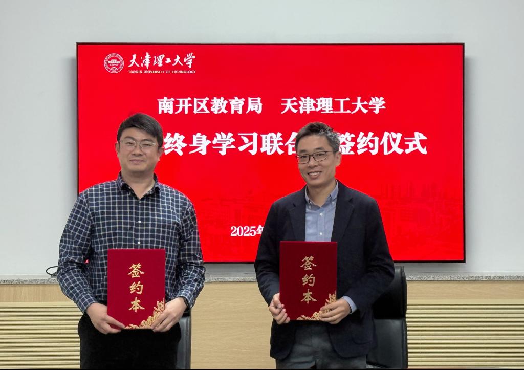 近日,我校与南开区教育局举行区校联合党日活动暨区校终身学习联合体签约仪式。南开区教育局副局长高深,南开区职工大学副校长薛宾,我校继续教育学院全体班子成员及相关教师代表参加活动。