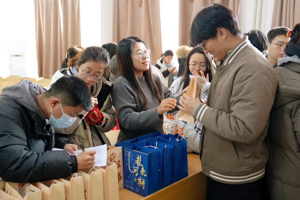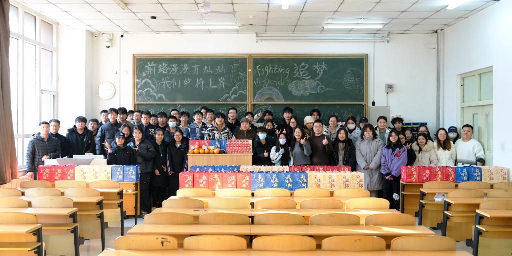 活动现场暖意融融,学院相关负责人与教师代表寄语考研学子。毕业班辅导员、专业教师与学弟学妹们手持定制卡片,一笔一画写下暖心祝福。学院还准备了糖果、橙子等慰问品等。