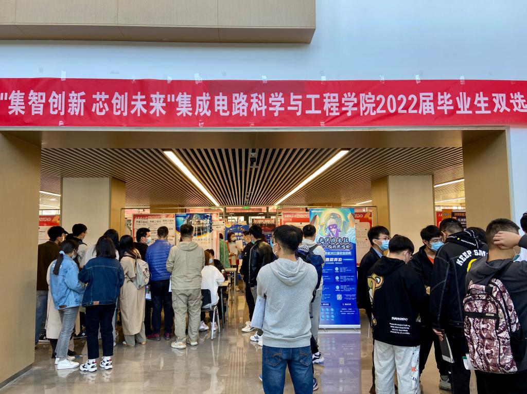 为扎实推动2022届毕业生就业工作,落实“清朗学风”建设工程,提升学生职业生涯规划能力,10月22日,集成电路科学与工程学院在29号教学楼举办“集智创新 芯创未来”2022届毕业生秋季双选会。双选会邀请到中芯国际集成电路制造(天津)有限公司、富士康科技集团鸿富锦精密电子(天津)有限公司、天津凯发电气股份有限公司、天津光电通信技术有限公司等40余家企业为毕业生提供就业岗位,学院领导、毕业年级辅导员及2022届本硕毕业生参会。