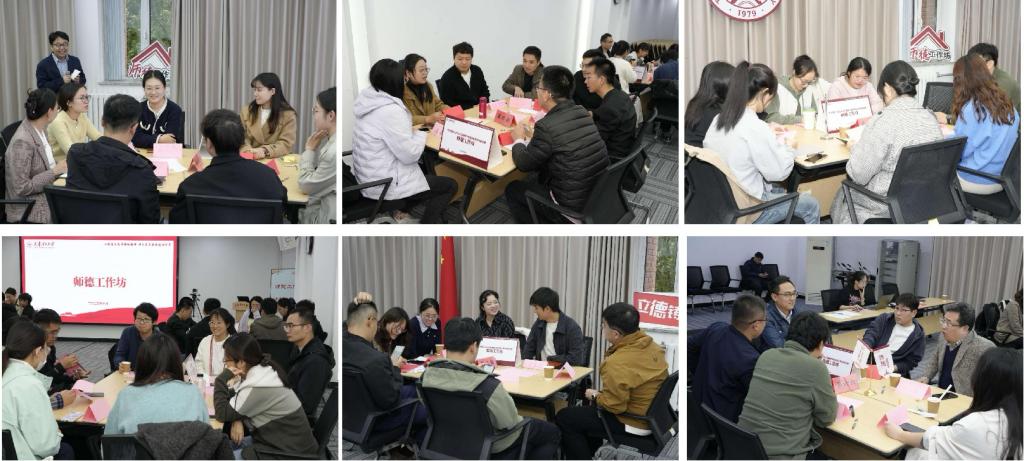 工作坊设置“破冰之旅”“教育家精神专题研讨”“师德警示教育案例剖析”等环节。50余名青年教师分为六组,紧密围绕“心有大我、至诚报国的理想信念”“言为士则、行为世范的道德情操”“启智润心、因材施教的育人智慧”“勤学笃行、求是创新的躬耕态度”“乐教爱生、甘于奉献的仁爱之心”“胸怀天下、以文化人的弘道追求”六个方面,进行座谈研讨和成果汇报。