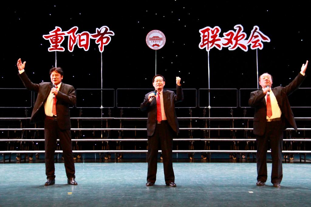 联欢会上,离退休老同志精心准备的节目精彩纷呈,演员和观众情绪高涨。舞台上有走下讲台的老教授,有走出实验室的老专家,有离开工作岗位的老领导和各级管理人员,大家通过在学校各社团的活动又恢复了青春,获得了健康。大合唱、小合唱、独唱、诗朗诵、太极功夫扇、风采展示、舞蹈等节目竞相展示,我校“津今有乐”相声社的学生也表演了精彩的快板书,尽显全校师生对中华民族敬老爱老优良传统的美好传承。舞台下也时时爆发出阵阵喝彩和掌声,观众们纷纷举起手机、相机记录下这美好时刻。