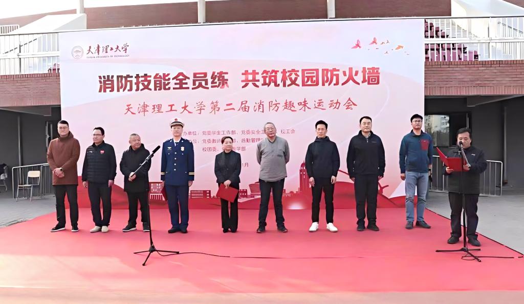 许瑞在致辞中向长期关心、支持我校消防安全工作的西青区消防救援支队表示感谢,向为消防工作付出辛勤努力的全体师生员工致以诚挚问候。她指出,学校党委始终高度重视消防安全工作,将其视为保障师生生命安全、维护校园和谐稳定的重要基石。近年来,学校通过层层压实安全责任、完善制度体系、升级消防设施、深化安全教育等系列措施,持续巩固校园消防安全防线。她希望广大师生以此次消防趣味运动会和消防宣传月为契机,将“全民消防、生命至上”的理念内化于心,将“安全用火用电”的要求外化于行,共同筑牢学校“双一流”建设的安全屏障。