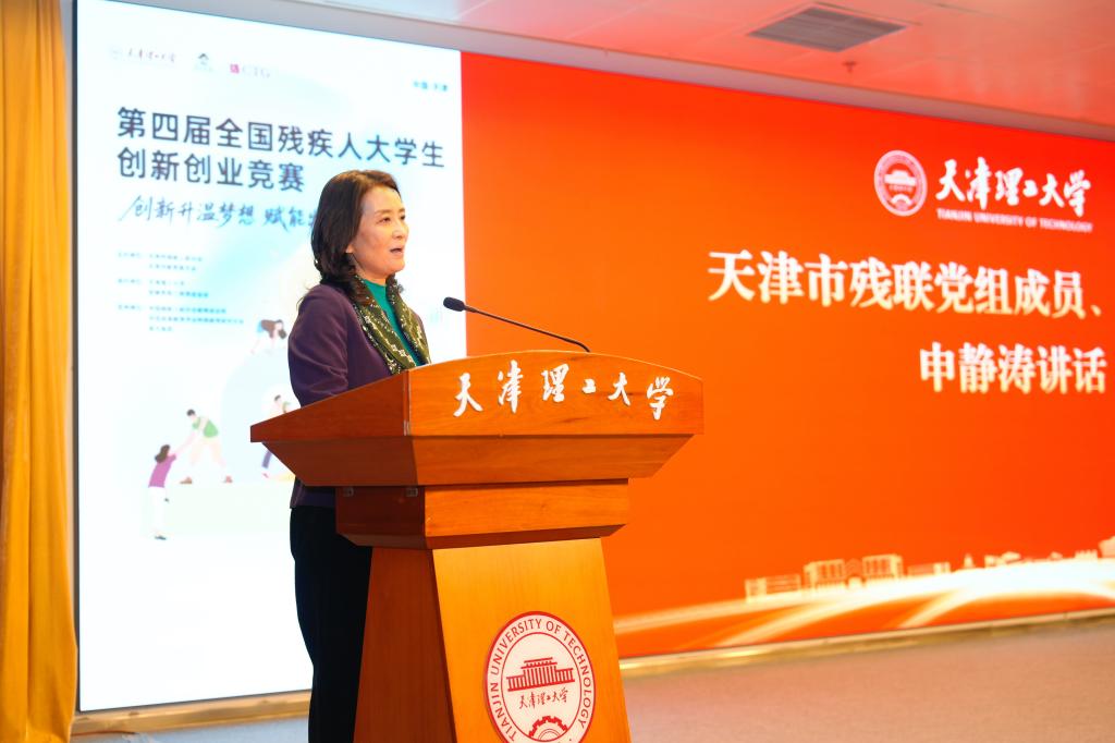 申静涛向获奖的全体残疾人大学生表示热烈祝贺,并赞扬他们身残志坚、敢闯敢试,用奋斗诠释担当,为广大残疾人树立了励志榜样。她表示,学习好贯彻好党的二十届四中全会精神是当前和今后一个时期全党全国的重大政治任务,市残联始终把支持残疾人创新创业作为重要举措,持续完善政策、搭建平台、强化服务。天津理工大学举办全国残疾人大学生创新创业竞赛活动,为残疾人施展才华、成就梦想提供了广阔舞台。她希望获奖学子不断提升项目核心竞争力,带动更多残疾人共同致富;希望各院校与部门持续发力,完善孵化服务体系,提供更精准的政策支持与服务保障;希望社会各界广泛参与、凝聚合力,营造关心支持残疾人创新创业的良好社会氛围。