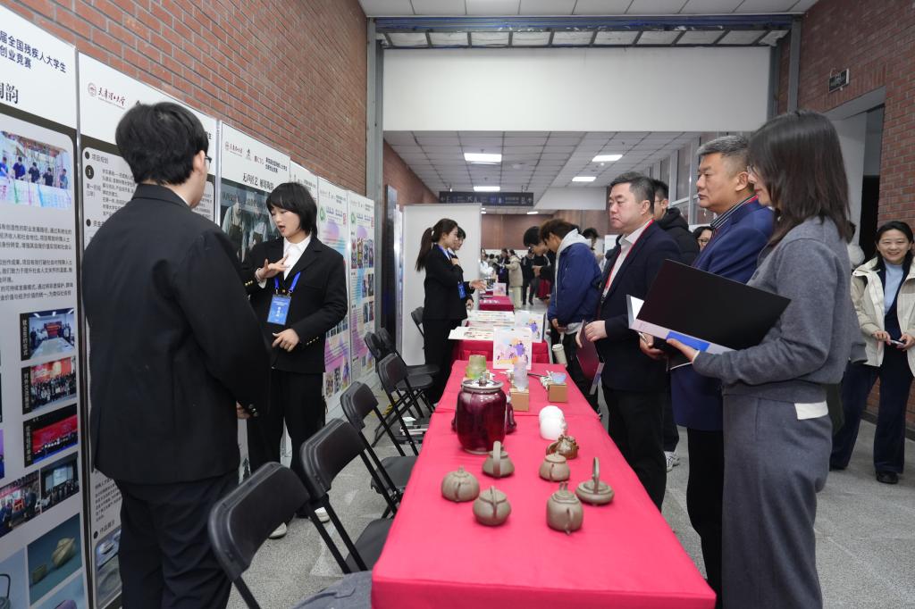 12月6日,第四届全国残疾人大学生创新创业竞赛在我校举行。高教学会特教分会理事长顾定倩,天津市残联党组成员、副理事长申静涛,易才集团首席财务官韩力,党委常委、副校长叶宁出席颁奖仪式。我校聋人工学院的“布言布语——非遗扎染艺术疗愈行动”“非遗赋能——聋人工学院吉祥物盲盒设计”作品荣获大赛一等奖。