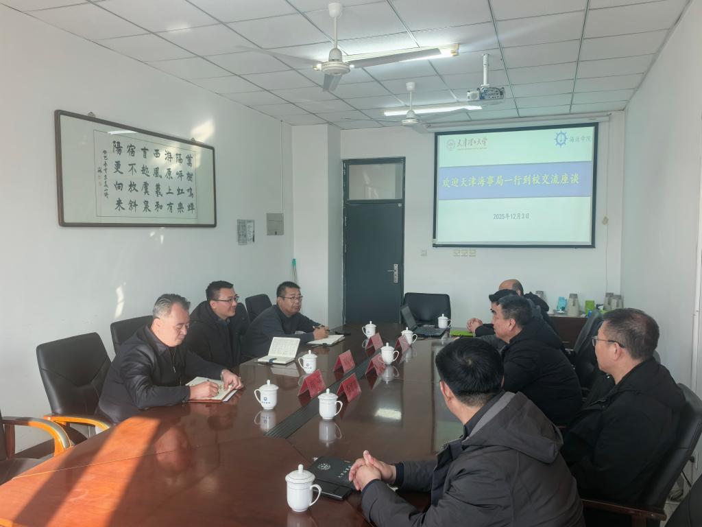 近日,天津海事局一级巡视员黄海波一行到海运学院座谈交流。党委常委、副校长苏荣华出席会议,海运学院相关班子成员参加会议。
