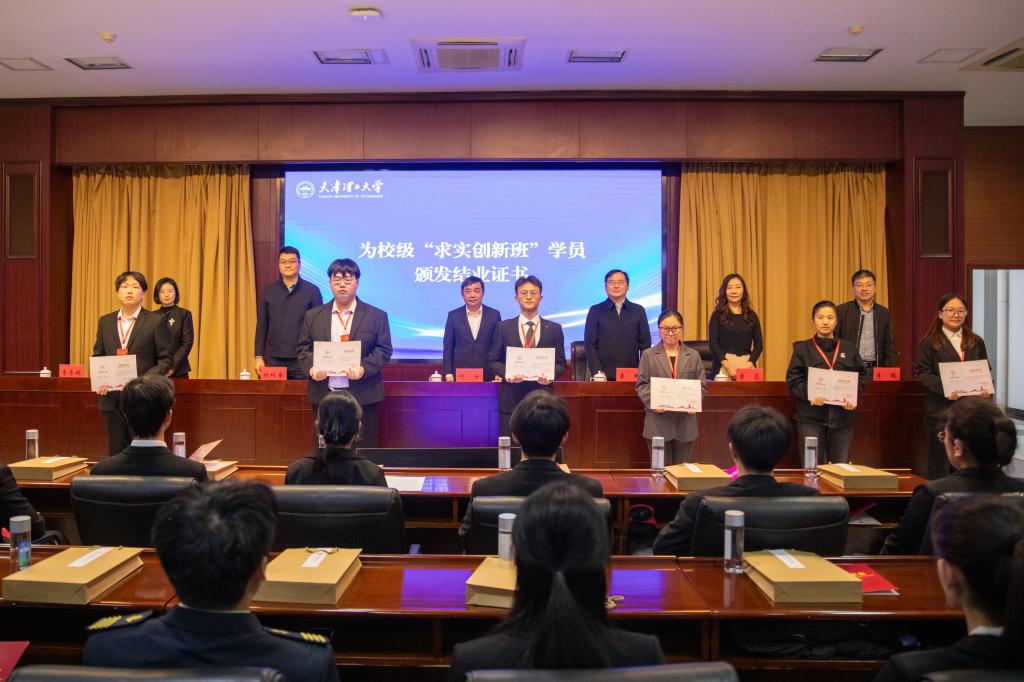 结业仪式上,参会领导为首届校级“求实创新班”学员颁发结业证书,并寄语同学们在新赛道上不断取得新突破。