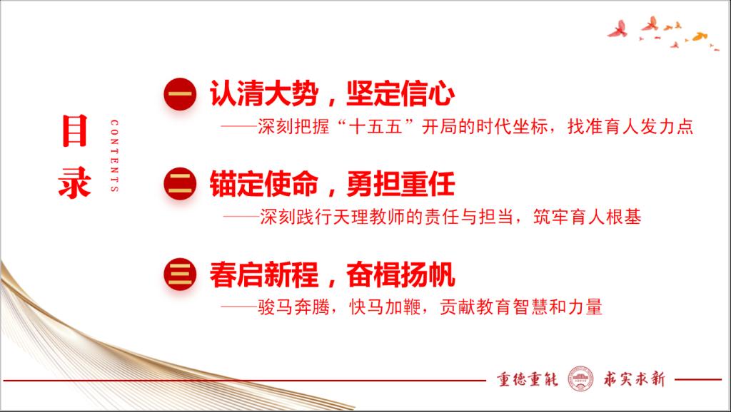 “教师思政第一课”不仅是一次集中宣讲,更是一场持续深入的思想动员。通过全覆盖讲授、分众化设计、故事化表达等方式,学校将教师思政工作从“软要求”变为“硬支撑”,从“上层设计”落到“基层实践”。面向“十五五”新征程,学校将持续深化教师思想政治和师德师风建设,推动思政教育与事业发展同频共振,引导广大教师以更坚定的信念、更扎实的行动,为“双一流”建设和教育强国目标贡献智慧与力量。