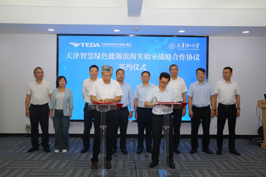 近日,天津智慧绿色能源滨海实验室战略合作协议签约仪式在我校举行。天津经济技术开发区管理委员会党委书记、管委会主任洪世聪,党委常委、管委会副主任马建军,校党委副书记、校长练继建,党委常委、副校长陈胜勇出席签约仪式。
