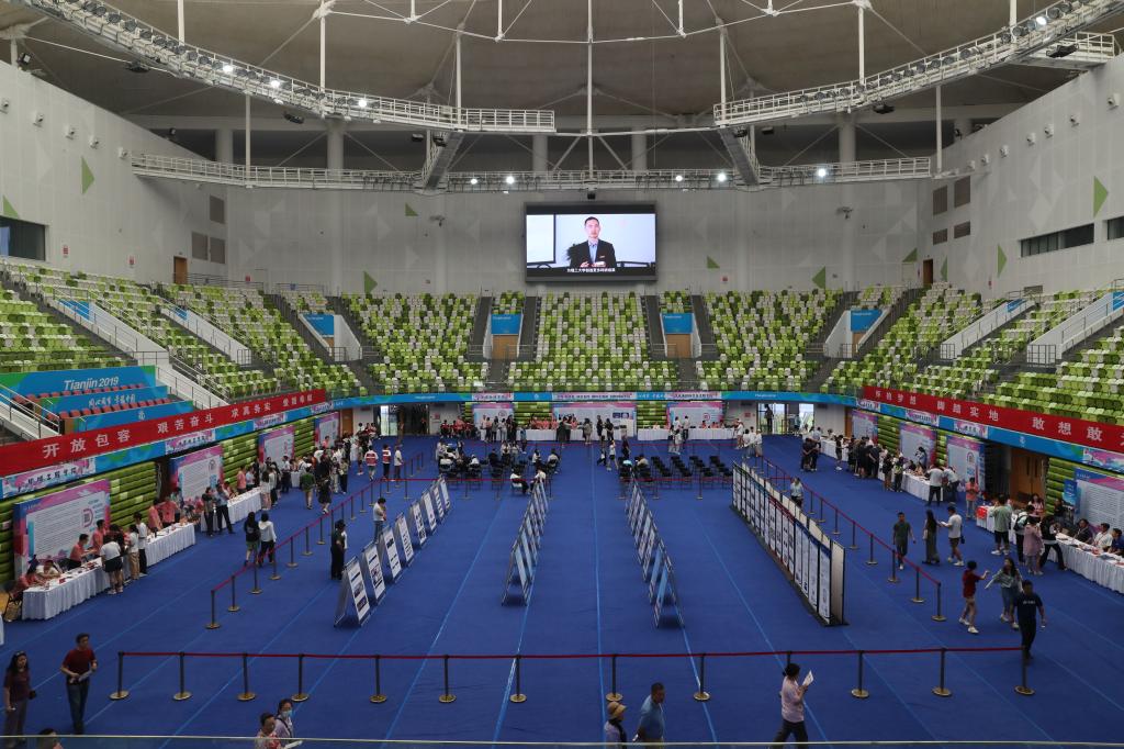 6月25日,2024年校园开放日暨高招咨询活动在体育馆举行,来自天津及周边省市的数千名考生及家长到校咨询。