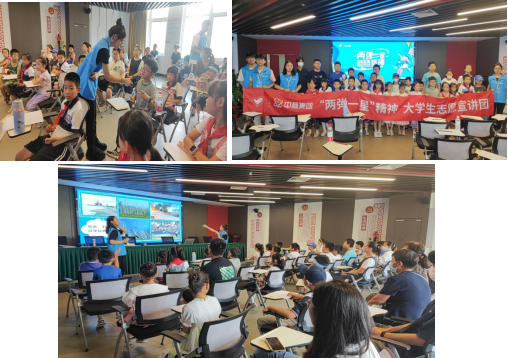 为弘扬科学精神,助力科教兴市,学院“两弹一星”精神宣讲团来到河东区鲁山道街道为30余名小学生开展宣讲。宣讲团成员向小朋友们展示了“华龙一号”核电站乐高模型,并结合自身学科背景,并为小朋友们讲解核裂变、核电站的工作原理及建造过程,把“两弹一星”精神所包含的爱国情、强国梦播撒在小小少年心中,引领学生厚植家国情怀,立志扎根津沽大地,用实际行动服务天津发展,为建设美丽天津贡献力量。