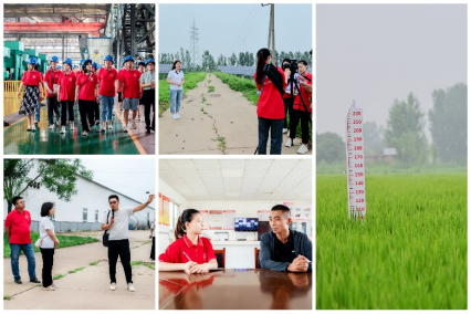 实践团走访了新天钢联合特钢有限公司、齐心现代农业示范园等产业园区,参观了潘庄镇“渔光互补”复合光伏项目、袁隆平团队“巨型稻”试验田,实地感受农村产业融合发展,调研提升农业产业链现代化水平的创新途径。 “90后”新农人田郡全告诉同学们:“掌握互联网技术的‘90后’‘00后’在乡村振兴舞台有无限潜力,比如我们推出的‘一分田’认养活动沉浸式体验水稻成长全周期,优化了消费体验,比传统种植收获了数倍的附加价值。”