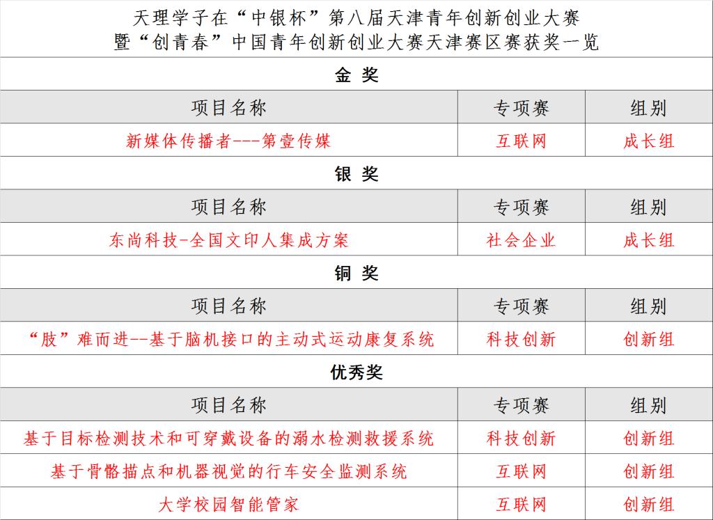 青春敢“闯”,青年敢“创”。我校学生团队在“中银杯”第八届天津青年创新创业大赛暨“创青春”中国青年创新创业大赛天津赛区决赛中斩获佳绩,共获金奖1项,银奖1项,铜奖1项,优秀奖3项。
