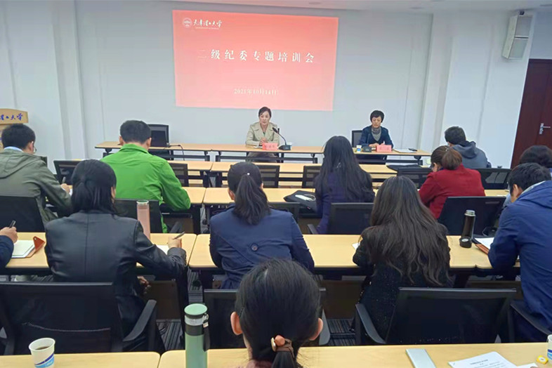 为推进清廉校园建设,提升纪检干部履职能力,按照2021年校党委关于党建工作和全面从严治党工作要求,10月14日下午,我校启动2021年学校二级纪委专题培训。校党委副书记郭滇华出席,全体二级纪委书记以及纪检委员参加。
