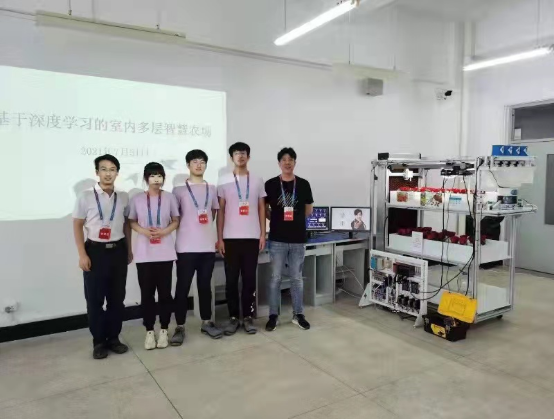 自2021年3月起,工程训练中心组织多学院学生进行“三菱电机杯”竞赛的相关培训。经过校内选拔赛、全国初赛线上比拼后,“什么都队”队脱颖而出,进入全国总决赛。团队依托工程训练中心三菱创新实验室的优质资源,历经2个多月完成了“基于深度学习的室内多层智慧农场”实物作品的制作和调试,最终获得了本科创新设计赛项全国一等奖的好成绩。