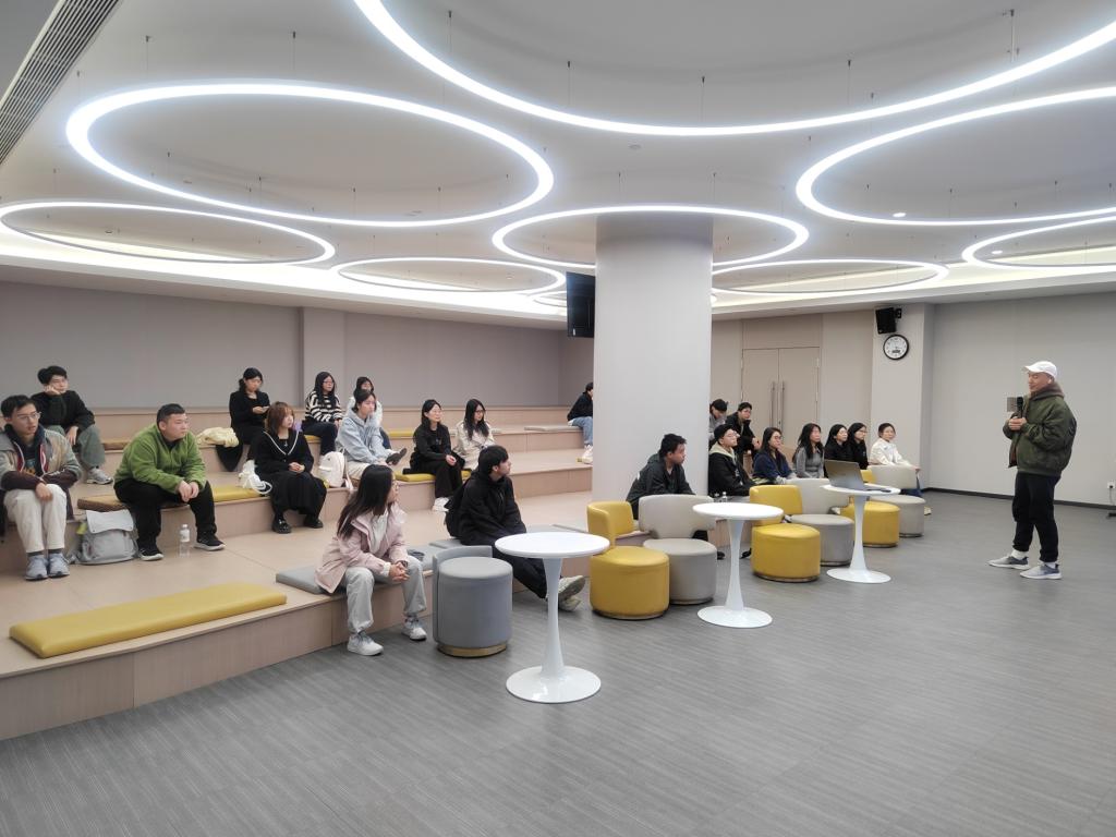 在天开园会议中心,曲面流动(天津)工业设计有限公司创始人、青年校友企业家李博洋应邀作“工业设计在商业实践中的创新应用”专题讲座。李博洋围绕大学生活、“专业”创业等内容进行讲述,鼓励大家从专业入手,提高创新思维能力,积极投身中国式现代化建设。天开创星科技发展有限公司创始人潘龙涛开展了新媒体创业团队组建管理与电商直播技能的培训,通过自身经历的分享与交流,帮助学生们提升新媒体实战能力。