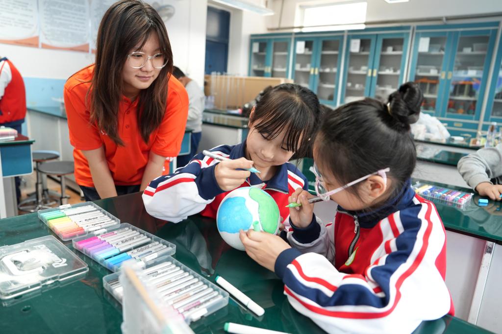 在创意制作环节,同学们化身“地球美容师”,在泡沫球上绘制海洋、森林、清洁能源等图案,用画笔表达对美好生态的向往。在“地球小博士”知识竞赛中,大家在答题中巩固了所学知识,优胜队伍获得了环保主题纪念品。