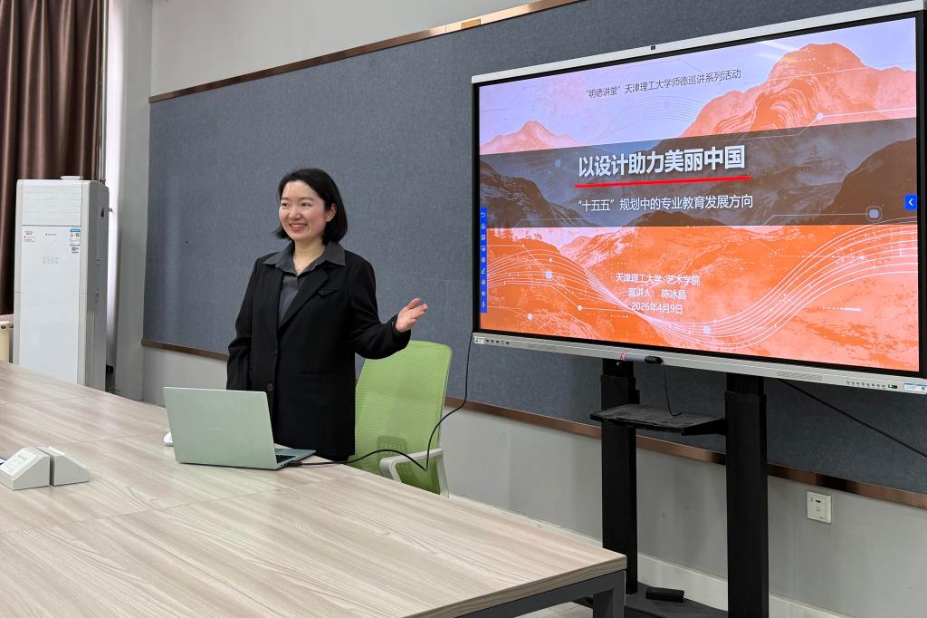 日前,学校2026年“明德讲堂”师德巡讲系列活动第四讲(总第172讲)开讲。2026年度青年教师学科交叉研究支持计划团队负责人、艺术学院教师陈冰晶以“以设计助力美丽中国,聚焦‘十五五’规划下的专业教育方向”为题,面向学院师生代表作专题报告。