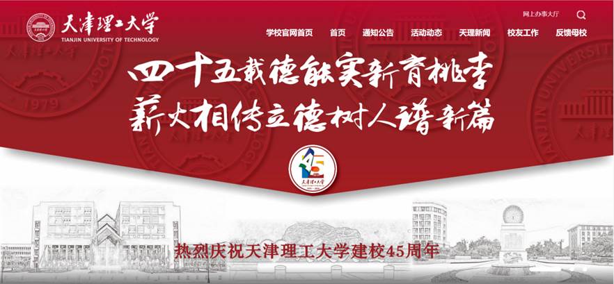 天津理工大学建校45周年纪念活动专题网站https://tut45.tjut.edu.cn/,同步推出手机端。网站开设【通知公告】【活动动态】【天理新闻】【校友工作】【反馈母校】【大事记】【祝福天理】七大板块。广大师生校友及社会各界人士可以在此注校庆动态,回顾学校45年发展历程,追忆求学时光,共叙岁月芳华,为学校建设发展助力护航。